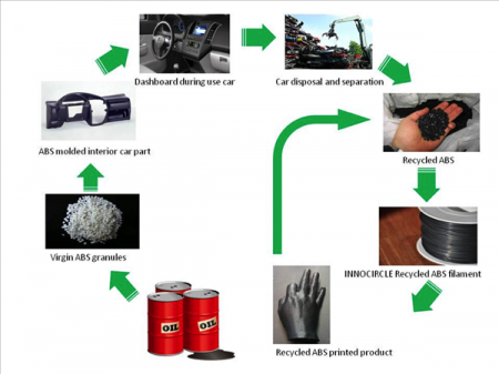 科技的發展一方面給人類帶來極大便利,另一方面也產生了更多的廢棄物和塑料垃圾,后者成為很多科學家和工程師們頭疼的問題,包括CIORC公司的老板JanWillemSlijkoord。他認為使用回收塑料制造的InnoCircle3D打印線材為塑料工業創建了一個“封閉的循環”,顯著改善了3D打印領域可持續發展的機會。關于處理ABS和PET的兩個“封閉的循環”,Slijkoord做了詳細解釋。